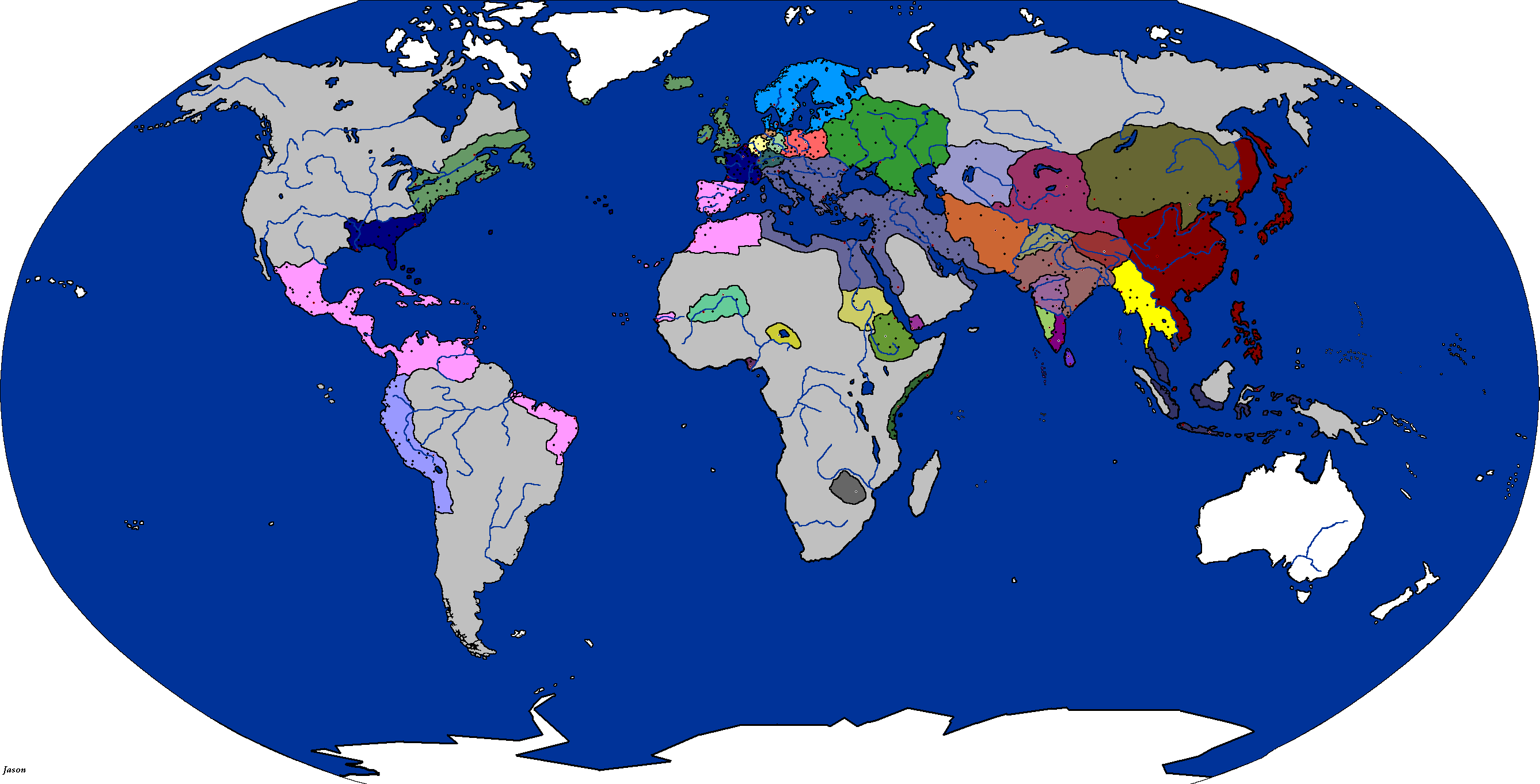 Meanwhile, we have fun in China, where Germany/Russia, Japan, and the Entente scramble to prop up their respective warlords and maneuver for spheres of influence. European dominance in Africa is left unchecked by war, although certainly brushfire conflicts will occur. The Ottoman Empire, similarly to China, may also devolve into economic spheres of influence, with the German one centered around the Berlin-Baghdad Railroad, the French getting Syria, the Italians getting a chunk of Anatolia (perhaps in concert with the Greeks; that's wide open and could go either way though) and the British getting the rest plus Basra. Meanwhile, the Americas develop into a third bloc to complement the somewhat informal Entente and the German-dominated Central Powers/