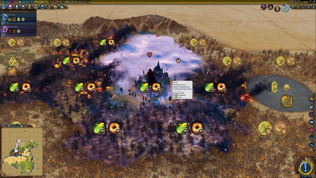 Previously, a Siberian Vampire Castle producing ~90 food+prod: "Hyper yields" 😆