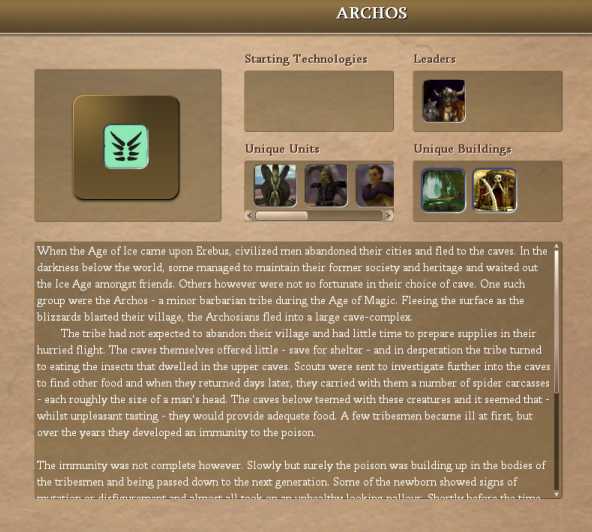 Also, seem Archos are FoL only. They greatly benefit from FoL religion (capital size, Dark Wealds, Same tech line for religion heroes. ), while other religions being less preferable than FoL for them. This also cool from RP point of wiev, making them dark, wild preservers of nature, and original nature law - stronger survives.