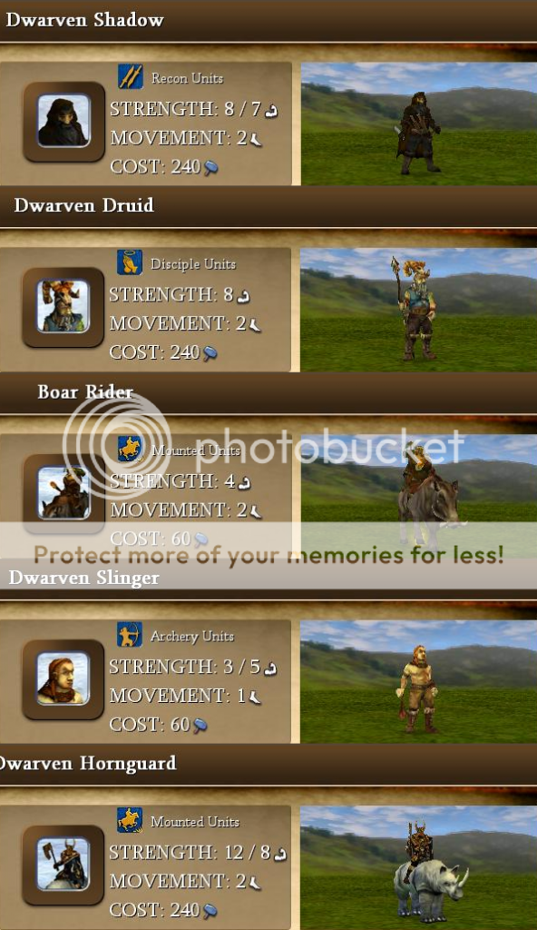 Dwarven Hornguard is a knight replacement that suffers from -1 movement but has an extra point of strength.