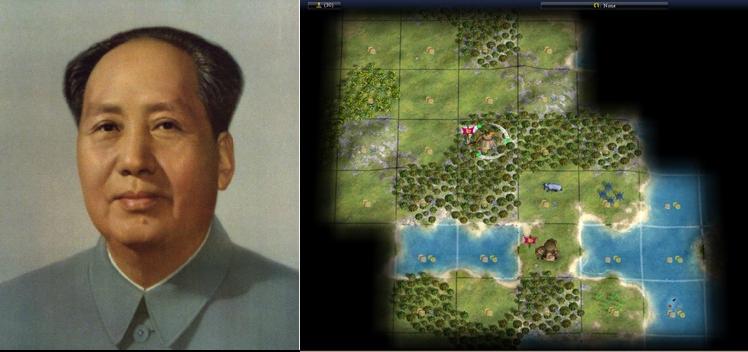 You play as Mao Zedong of China, on Deity difficulty, against 7 AIs and with this start (click the image to see a bigger version):