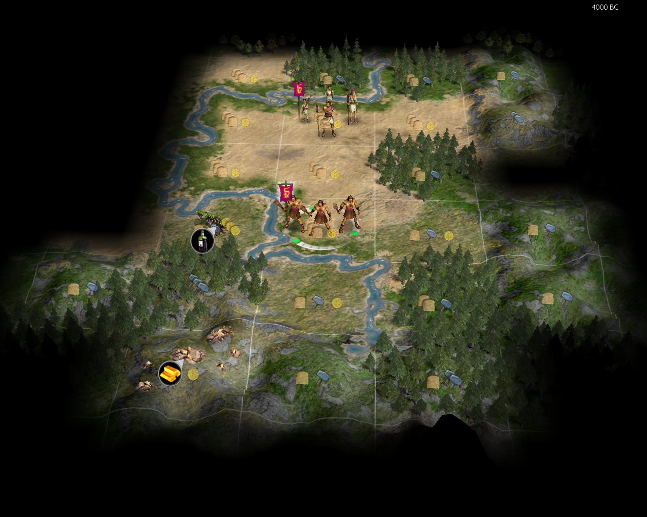 - Get archer, starting on tile with settler.