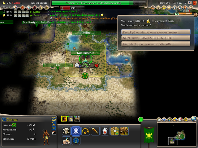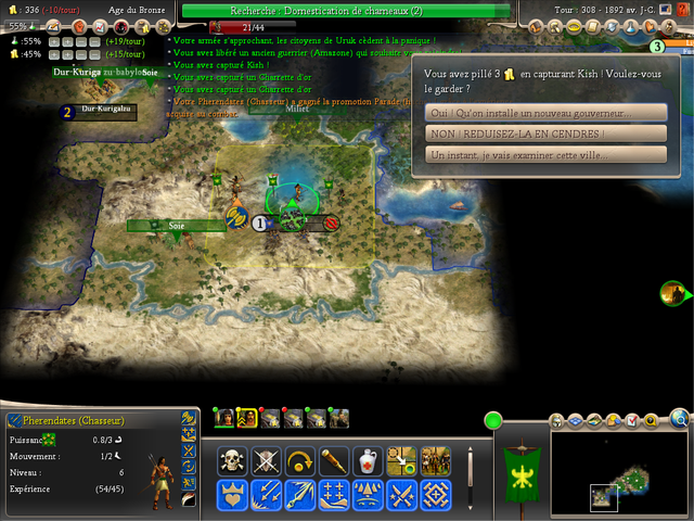 Conquest 3 Turn 308, Total earned --> 3 emigrants, 6 gold carts, 2 partisan axemen, 1 freed amazon