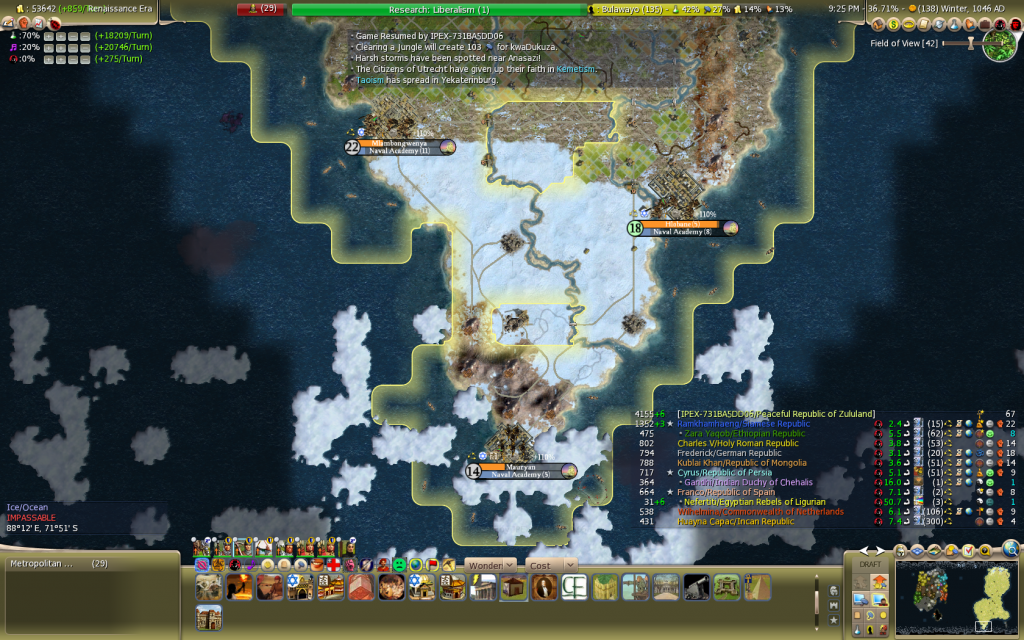 13. Resource spawning - The odds of spawning a resource need to be fixed to game speed/length, Empire size and possibly difficulty level as well. Playing an eternity game, I seem to spawn a resource nearly every turn on average, mind you I control a full continent.