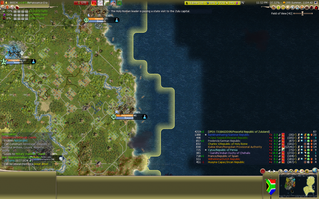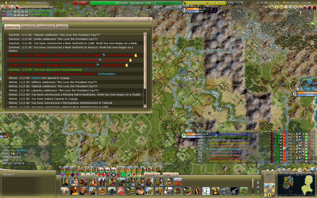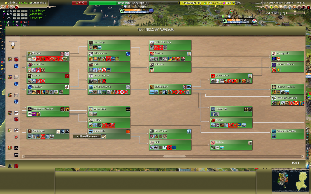 Solution - Hmm This merges with the next on on tech diffusion, maybe make it a % of Era tech's researched, or % v's number of tech's you exclusively know? hard to code I know, very difficult to fix