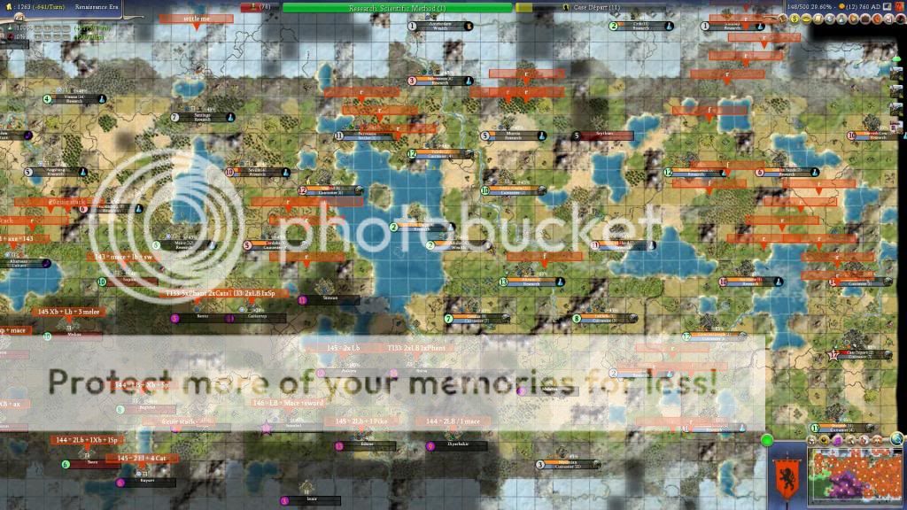 Turn 148, 760 AD: Your population: 272 (61.26%) exceeds the Domination Limit: 208 (47.00%)