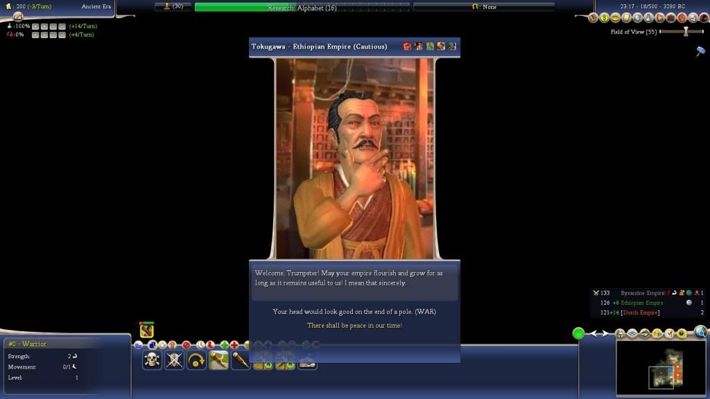 Turn 0, 4000 BC: Trumpster adopts Slavery!