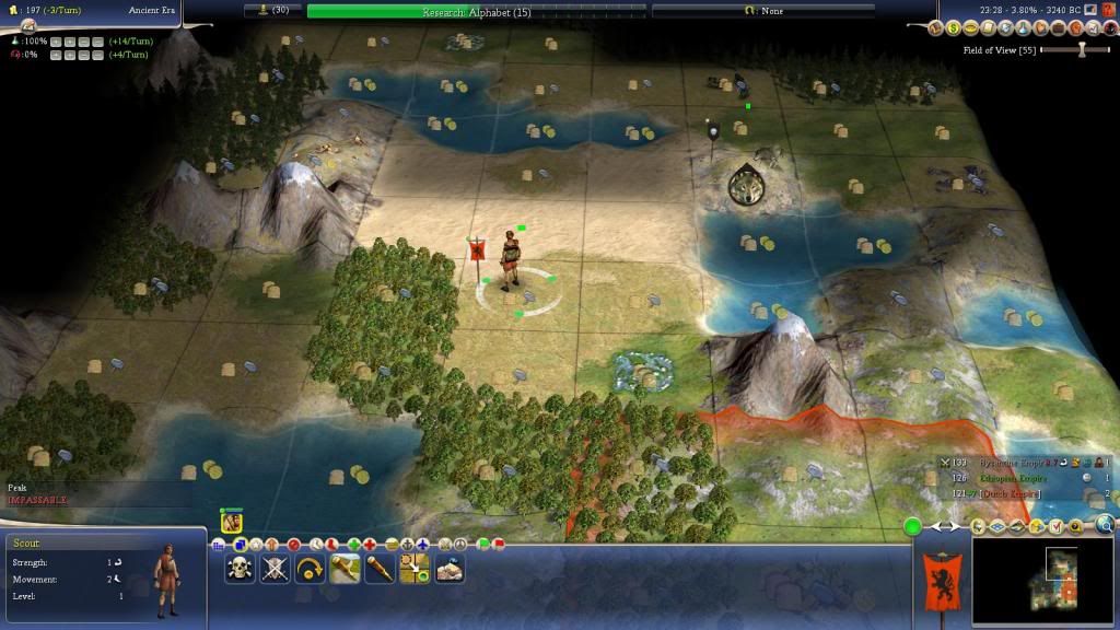 Turn 14, 3440 BC: You have trained a Warrior in Amsterdam. Work has now begun on a Settler.