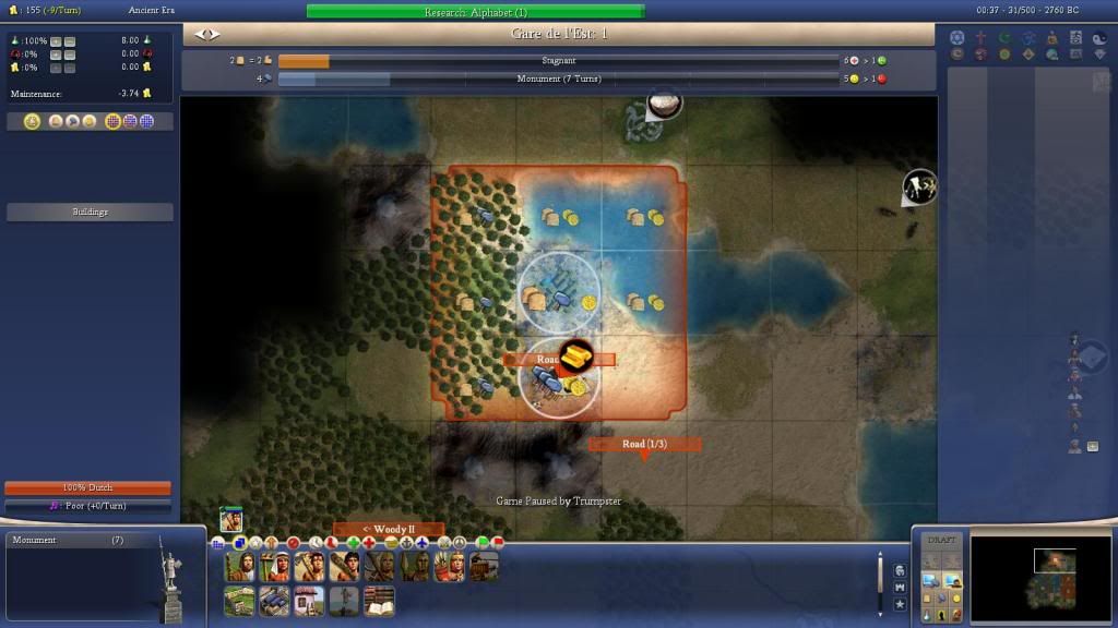 Turn 16, 3360 BC: Amsterdam can hurry Axeman for 1⇴ with 11ℤ overflow and +1⇤ for 13 turns.