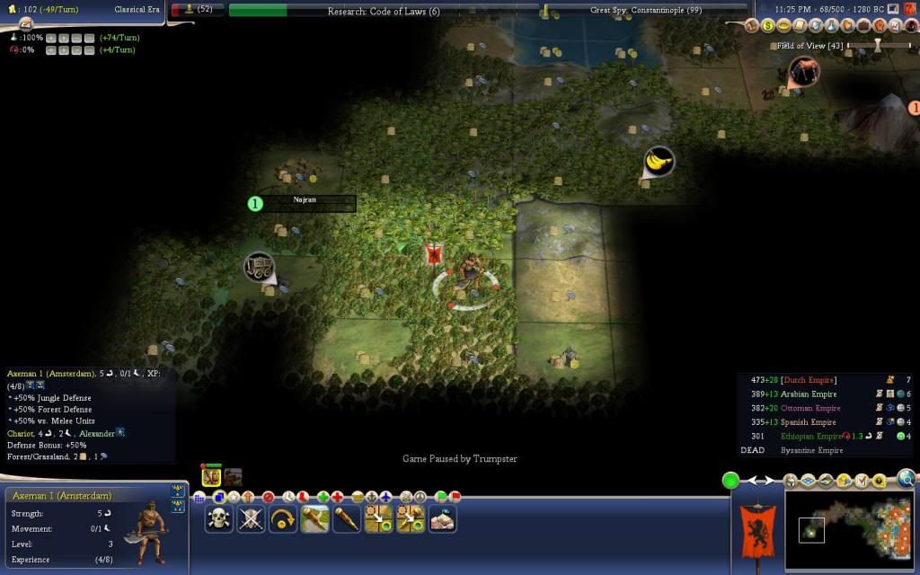 Turn 68, 1280 BC: Trumpster's Axeman 13 (Sheepish) is hit for 19 (43/100HP)