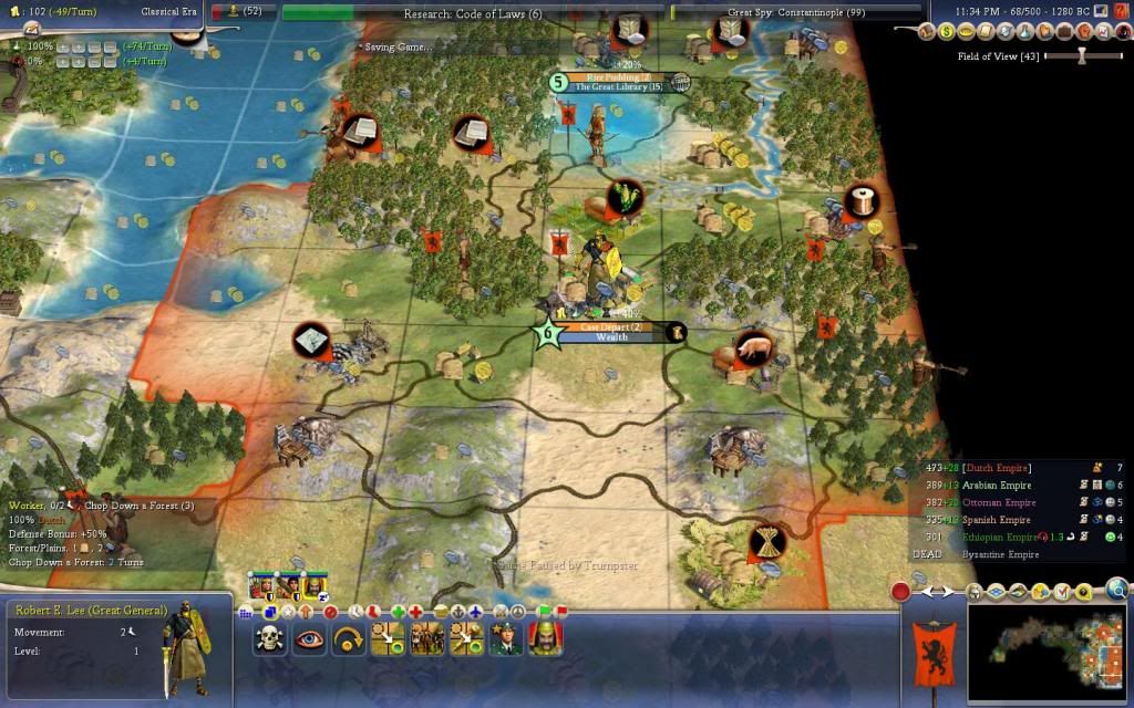 Turn 68, 1280 BC: Robert E. Lee (Great General) has been born in Case Départ (Trumpster)!