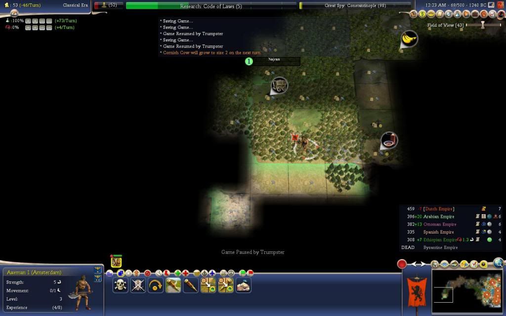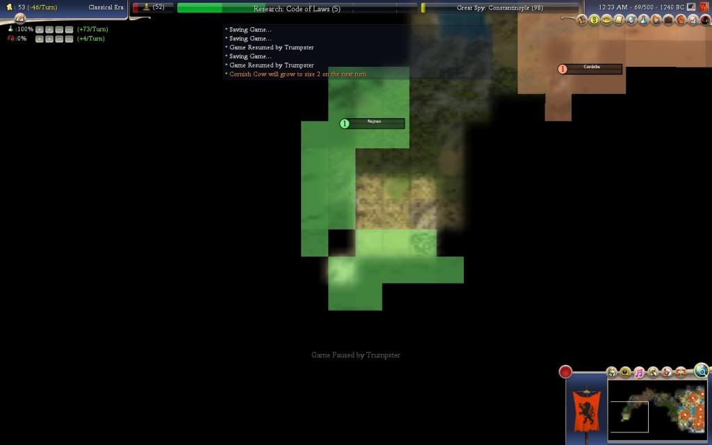 Turn 69, 1240 BC: Cornish Cow will grow to size 2 on the next turn.