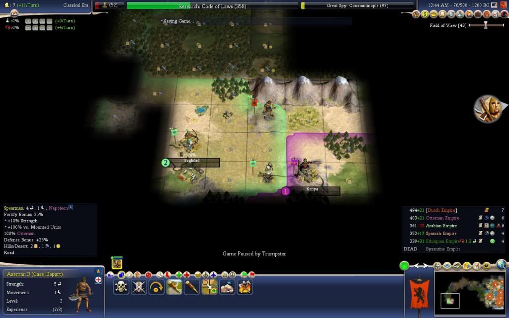 Turn 65, 1400 BC: Trumpster's Axeman 2 (Case Départ) (5.00) vs Asoka's Archer (3.00)