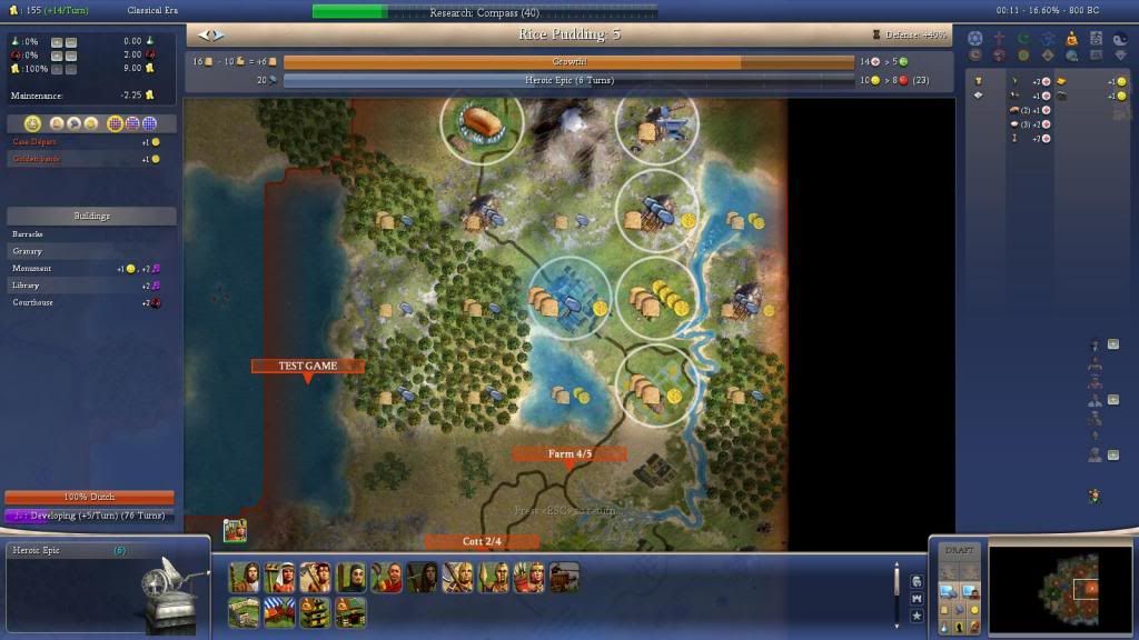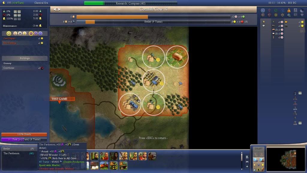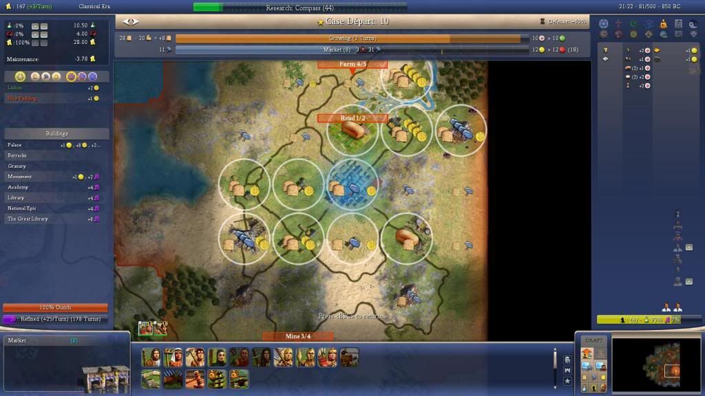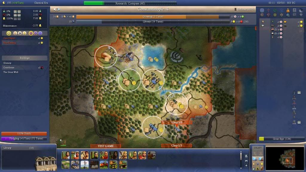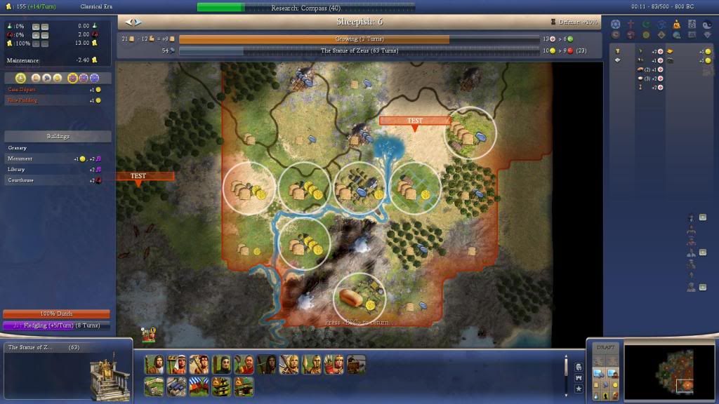 OK I tried to integrate most suggestions, here is a run to turn 81. I don't have time to post a full PPP tonight but I'll give you the main points, the builds in the cities turn-by-turn and the final save.