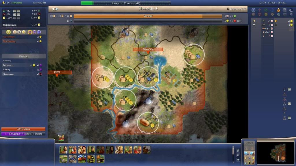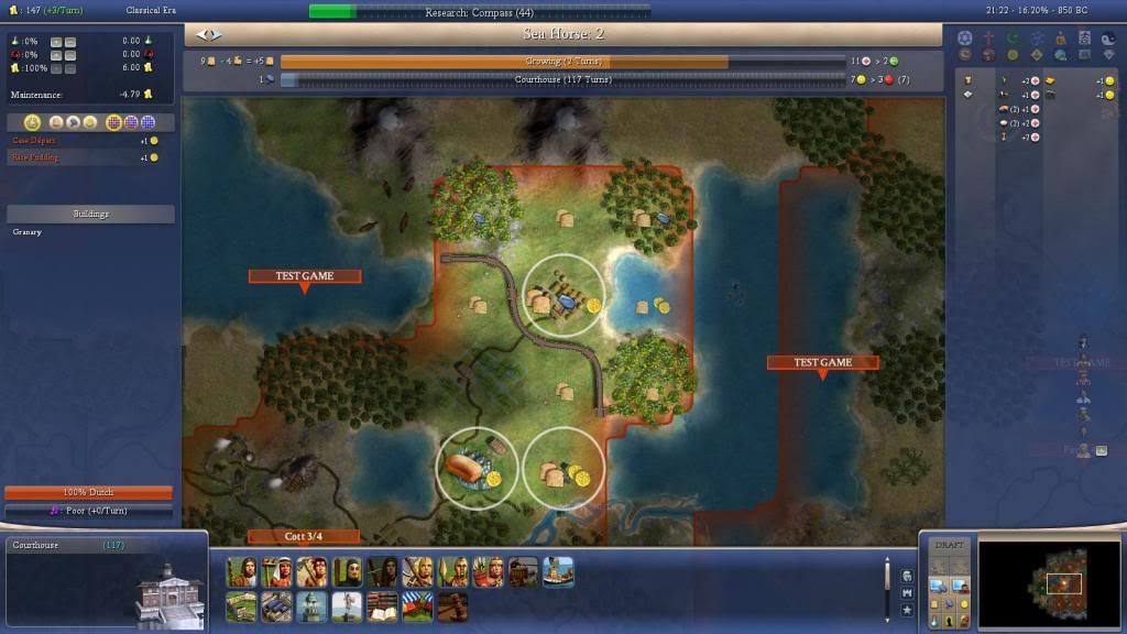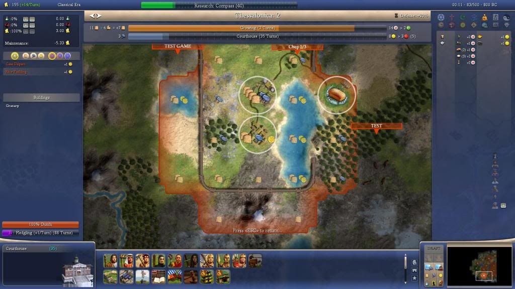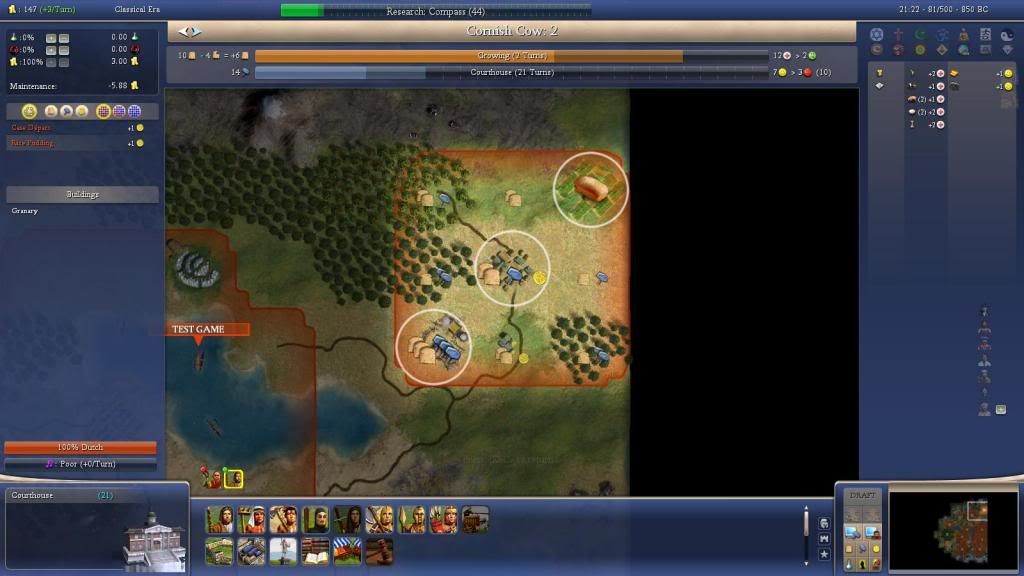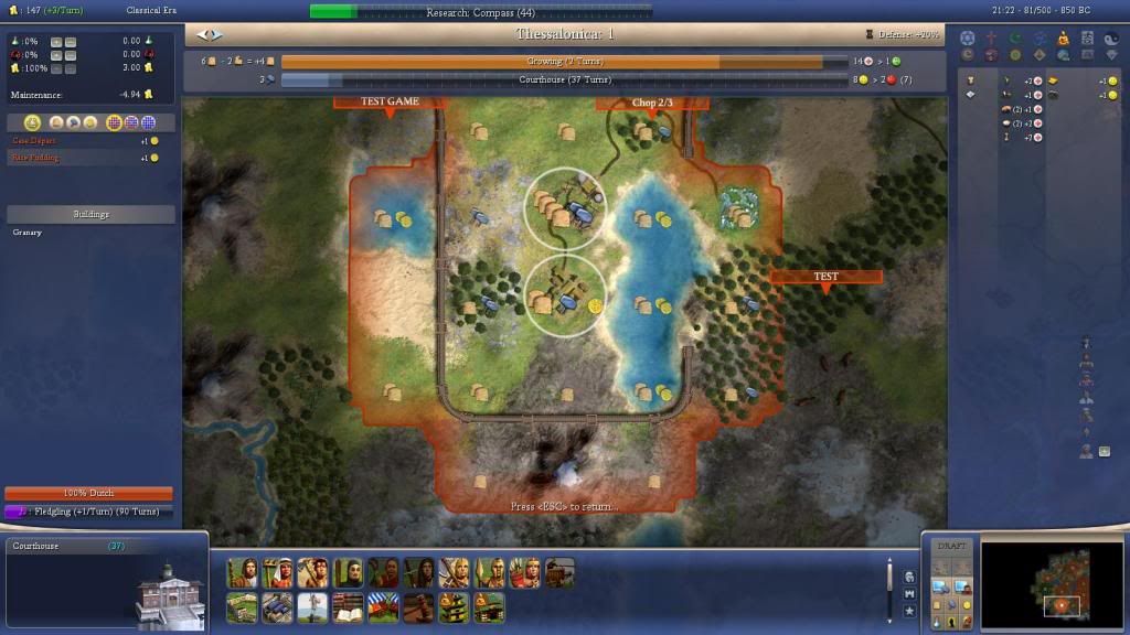 This would also mean that we don't need to whip the city, which is food poor, twice. We could chop the Courthouse as soon as Mathematics is in, or choose to whip again (working more improved tiles in the interim).