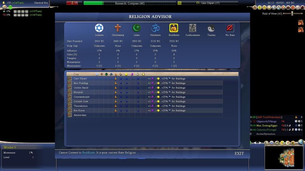 I won't harp on about our need for Missionaries in the north. ;) But I would add that Sea Horse needs a religion too, for the :culture: . A border pop will let us work Clams and Horse. Either use a Missionary from Constantinople, or whip one in Sheepish.