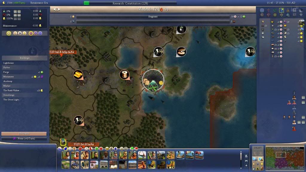 My immediate thought last night was that we need 3–4 more Workers chopping Forests for the Crab site. The two Workers who improved the Sheep need to move to do that. One Worker needs to be drawn back from the capital/Sheepish.