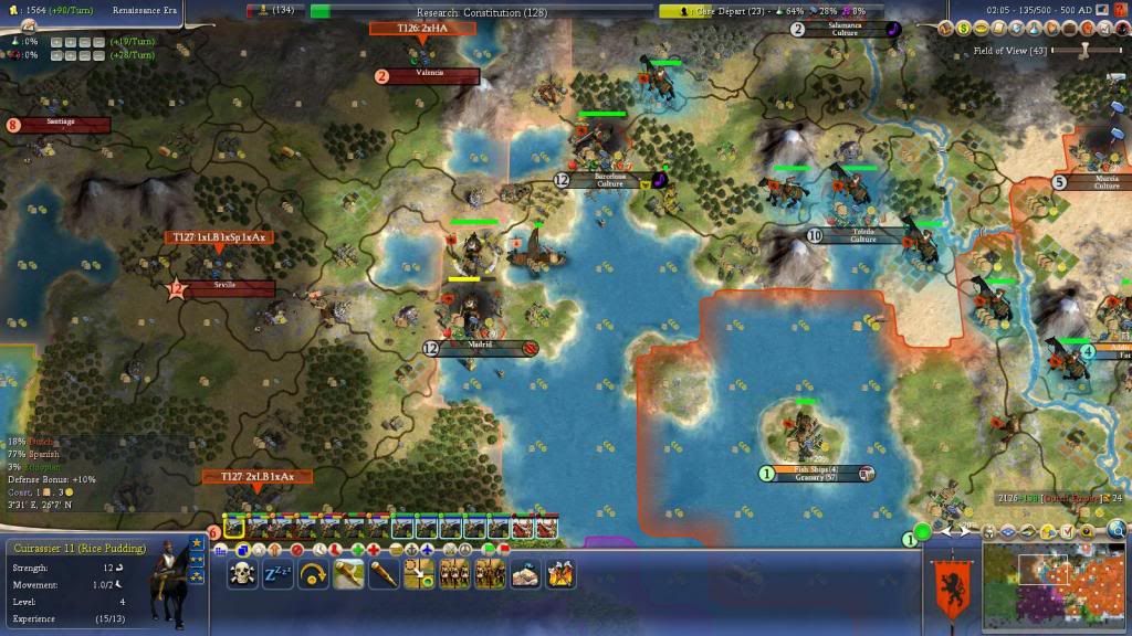 We need to move some 1-movement military police into the big Spanish cities that are leaving revolt (Toledo, Barcelona).The most important factors are